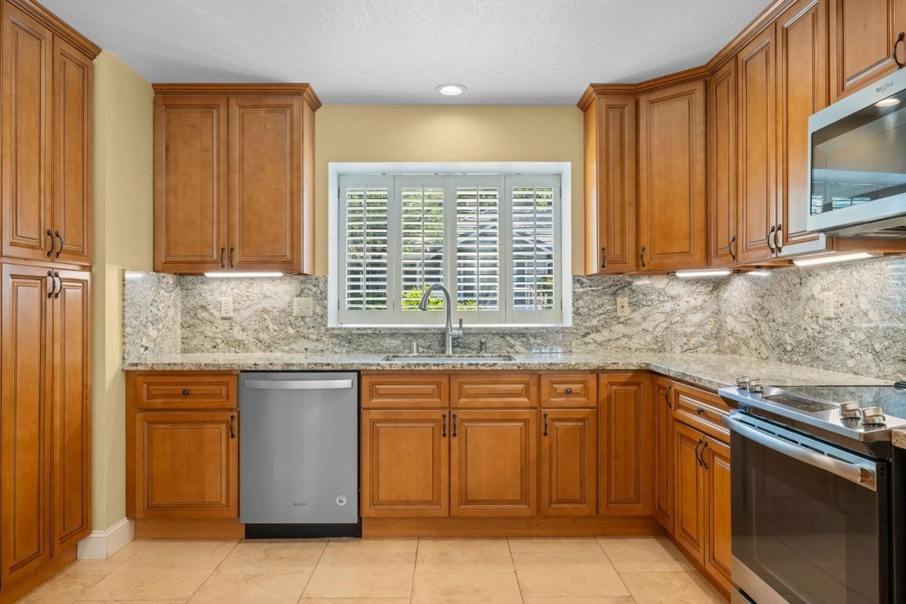 A true gem! Spacious, bright and cheery home on a quiet street in a very safe, 24-hour gated and guarded neighborhood. Large kitchen with lots of granite countertop space, a generous dining area that opens to the living room, and huge back deck that wraps from the dining to the living room to the master bedroom! Easy entertaining in this generous home! With a private bedroom and en suite, a large living space and a built in wet bar, the downstairs of this home could be rented out separately, used as a guest quarters or in-law suite, or as a private office, gym, playroom, etc. This home has a private, warm cottage feel to it and gets amazing natural light all year long! *NEW HVAC system, microwave & garbage disposal, and BRAND NEW water heater installed!